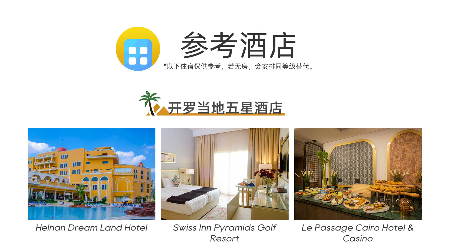 6)埃及客观条件与国内旅游无法相提并论,整体服务水平和硬件设施与国内旅游存在一定差异,敬请理解。