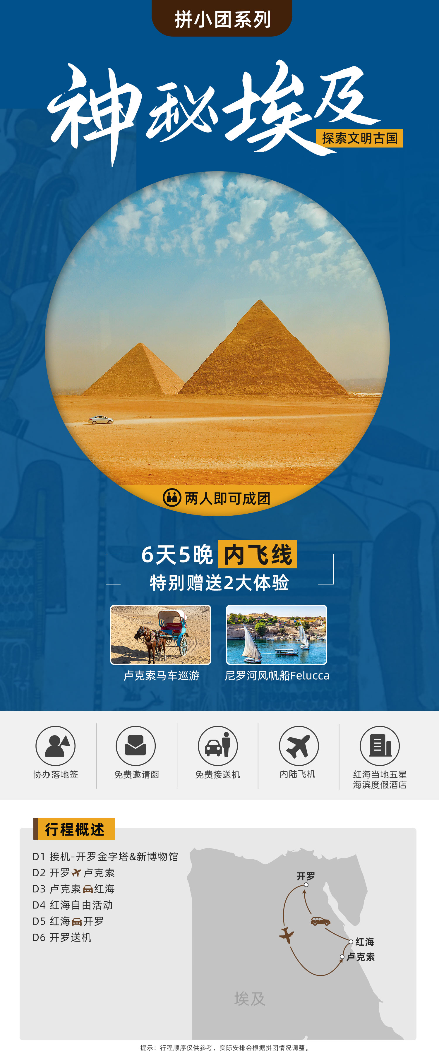 路线名称:<拼小团>【内飞线】埃及开罗+红海+卢克索6日游(落地签)